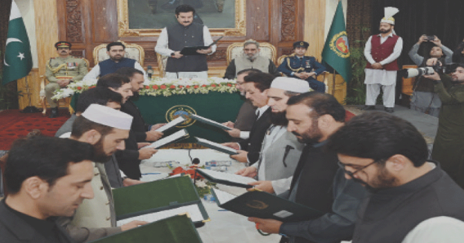 فضل شکور خان کو پبلک ہیلتھ اینڈ انجنیئرنگ کا محکمہ دیا گیا، ڈاکٹر امجد علی کو ہاؤسنگ کا قلمدان مل گیا، آفتاب عالم آفریدی ایک بار پھر قانون و انسانی حقوق کا قلمدان سنبھالیں گے، سید فخر جہان ایکسائز اینڈ ٹیکسیشن کے وزیر ہونگے ۔