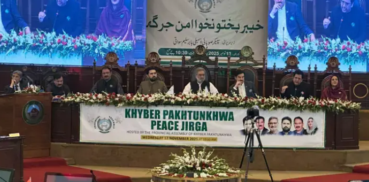 پشاور: جرگے سے وزیراعلیٰ خیبرپختونخوا سہیل آفریدی سمیت سیاسی قائدین نے خطاب کیا، سپیکر خیبرپختونخوا اسمبلی نے امن جرگہ کا اعلامیہ پڑھا اور کہاکہ امن سے متعلق آج تمام پارٹیاں یک آواز ہیں، تجاویز پررات کو بھی بیٹھےتھےاور آج بھی لائحہ عمل تیار کیا، آپ سب نے ہمارے دست و بازو مضبوط کیے ۔