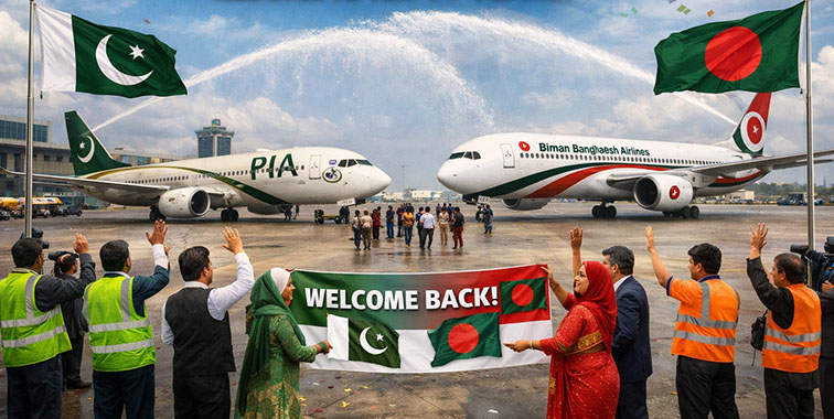 پاکستان اور بنگلہ دیش نے دوطرفہ تعلقات میں ایک نئے باب کا آغاز کیا ہے. 14 سال بعد براہِ راست فضائی رابطے بحال ہوگئے، بنگلہ دیش کی قومی ایئرلائن بیمان ایئرلائن کی پہلی پرواز آج ڈھاکہ سے کراچی کے لیے روانہ ہو گی۔ تفصیلات کے مطابق یہ پہلی براہ راست پرواز آج رات کراچی کے جناح انٹرنیشنل ایئرپورٹ پر لینڈ کرے گی، جس سے ڈھاکا اور کراچی کے درمیان معطل ہوائی راستہ بحال ہو جائے گا۔ یہ پرواز ڈھاکا سے رات 8:00 بجے روانہ ہوگی۔ پرواز بی جی-341 سے تین گھنٹے کا سفر طے کر کے رات 11:00 بجے کراچی میں لینڈ کرے گی۔ بنگلہ دیش ایئر لائنز کی افتتاحی پرواز کے استقبال کے لیے کراچی ایئرپورٹ پر مخصوص انتظامات کیے گئے ہیں۔