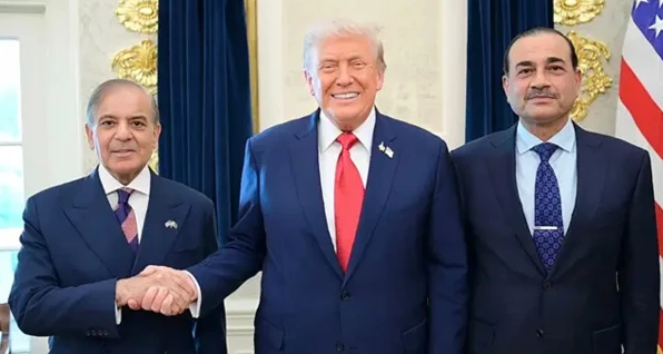 وزیراعظم آفس کے جانب سے جاری اعلامیے کے مطابق وائٹ ہاؤس میں وزیراعظم شہباز شریف اور فیلڈ مارشل جنرل سید عاصم منیر نے امریکی صدر ڈونلڈ ٹرمپ سے خوشگوار اور دوستانہ ماحول میں ملاقات کی ۔