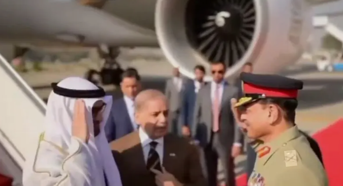 وزیراعظم شہباز شریف اور فیلڈ مارشل عاصم منیر نے کابینہ کے ہمراہ انہیں خوش آمدید کہا، وزرا میں اسحاق ڈار، خواجہ آصف، احسن اقبال،عطا تارڑ اور دیگر موجود تھے، وزیراعظم نے وزرا کا تعارف بھی کرایا۔ یو اے ای صدر کے ساتھ ان کا اعلیٰ سطح کا وفد بھی پہنچا ۔