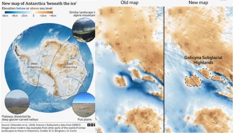 محققین کی جانب سے تیار کردہ اس نئے نقشے میں برفانی تہوں کے نیچے موجود متنوع زمینی ساخت سامنے آئی ہے، جس میں بلند پہاڑی وادیاں، ہموار نشیبی علاقے اور گہرائی میں کٹی ہوئی کھائیاں شامل ہیں۔ یہ کھائیاں دراصل تیز رفتاری سے بہنے والے برفانی دریاؤں نے زمین کو کاٹ کر بنائی ہیں۔